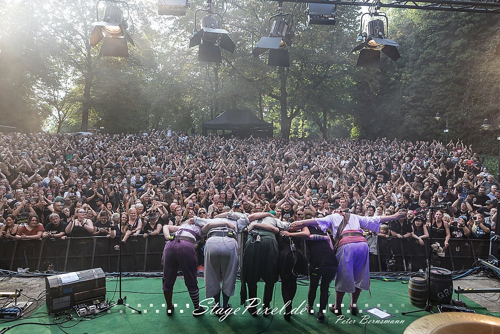 Das Feuertal Festival auf der Waldbühne Hardt in Wuppertal ist jedes Jahr im August ein beliebter Treff der schwarzen Szene. Bei ausverkaufter Veranstaltung feierten am 31.08.2019 rund 2.500 Fans bei bester Laune und schönstem Wetter. Lediglich ein Platzregen sorgte für eine kurze Unterbrechung der Veranstaltung, denn auf der Bühne sind nicht alle Flächen regensicher.