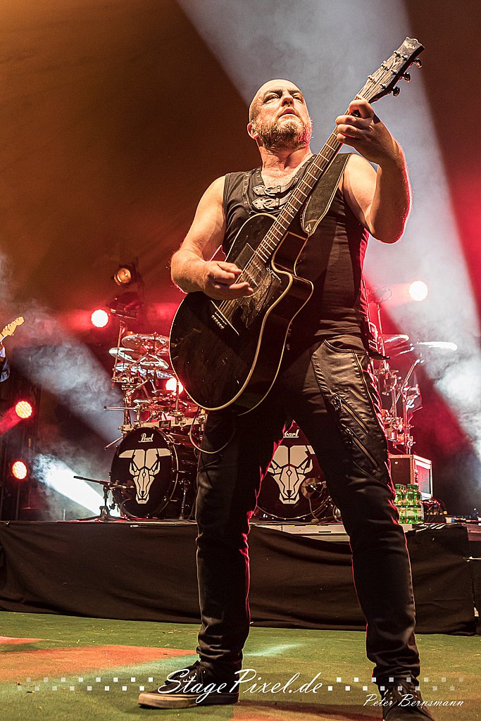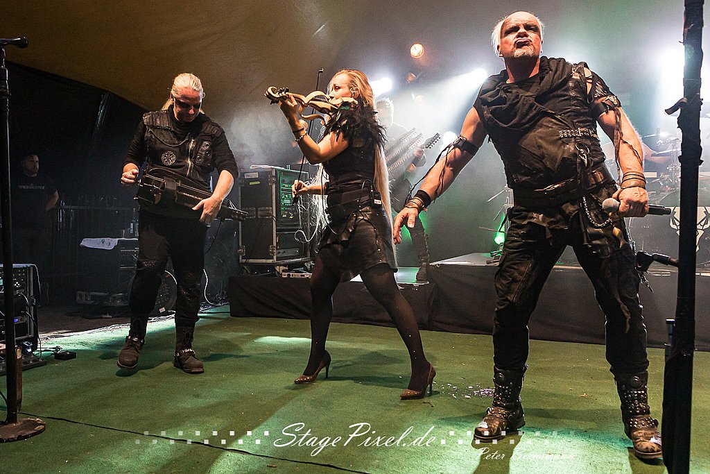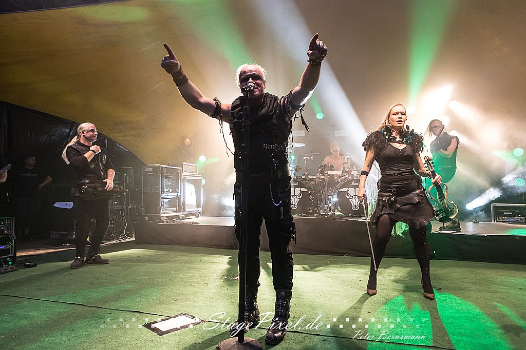 Das Feuertal Festival auf der Waldbühne Hardt in Wuppertal ist jedes Jahr im August ein beliebter Treff der schwarzen Szene. Bei ausverkaufter Veranstaltung feierten am 31.08.2019 rund 2.500 Fans bei bester Laune und schönstem Wetter. Lediglich ein Platzregen sorgte für eine kurze Unterbrechung der Veranstaltung, denn auf der Bühne sind nicht alle Flächen regensicher. Doch der Headliner Subway To Sally konnte bereits eine Viertelstunde vor der geplanten Zeit beginnen. Und so konnte dieser sein komplettes Set trotz Zwangspause spielen.